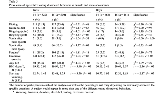 Kjelsas E, Bjornstrom C, Goetestam K.G. (2004) Prevalence of Eating Disorders in Female and Male Adolescents (14-15 years): Eating Behaviors 2004, VOL. 5, 13-25